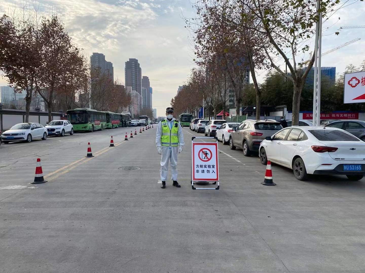 太阳集团tyc539计算机应用与技术专业1906班程少强,在西安市长安区综合执法大队顶岗实习。根据西安市长安区疫情防控工作安排,主要参与整个长安区的核酸检测,和核酸转运工作,从封城开始长安区至少检测10次核酸,身穿防护服每天都坚守在岗位,确保长安区的每一名群众都要按时做核酸,在转运核酸的路途中进行布控,第一时间确保核酸的检测样本能按时到达方舱医院进行检测。在战"疫"中,不畏艰辛、不畏严寒,努力为西安共同抗击疫情贡献自己的微薄之力,愿与渭职师生一起并肩前行,打赢这场没有硝烟的抗"疫"战斗。
