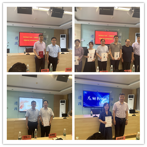 首先,王勇代表公司致欢迎词,对各位远道而来的领导和专家表示最热烈的欢迎和最衷心的感谢。接着,阴国富教授和朱创录教授分别为公司白永祥教授和5名教师、2名员工颁发了渭南市计算机学会副理事长聘书及会员证书。随后,渭南市计算机学会理事、渭南市“领军人才”“最美科技工作者”丁松年主任以《离散重型装备制造业工业互联网创新应用》为题,从创新应用规划、实现的价值、实践研究等方面进行了详细介绍。渭南市计算机学会副秘书长、渭南市“最美科技工作者”王艳丽副教授以《无缝连接——5G NTN》为题,从底层技术、应用场景、星地融合等方面做了精彩分享。报告会结束后,还为两位专家颁发了荣誉证书。