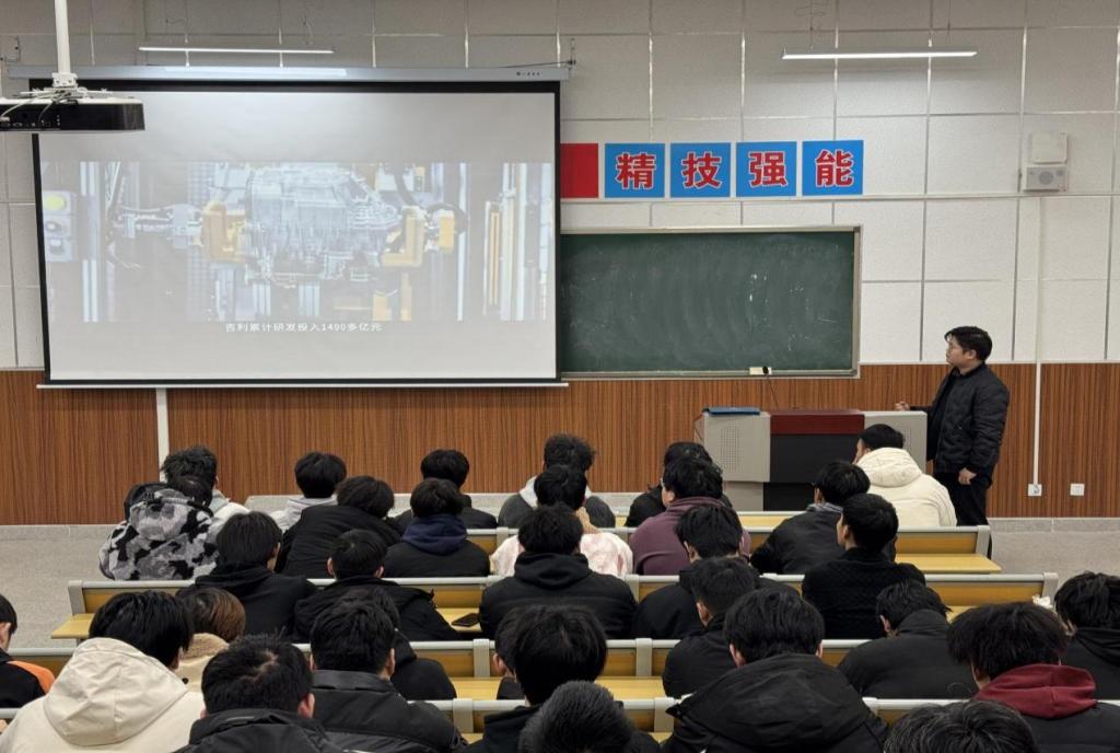 王凯分享了吉利汽车的发展历程、企业文化、市场布局及未来发展战略,着眼新能源汽车蓬勃发展与智联网汽车技术迭代浪潮,剖析当下汽车市场机遇与挑战,通过生动的案例讲解了近几年来汽车行业走向,希望大家把握时代机遇,契合行业动态需求提前规划个人职业路径。吉利集团精心打造的“定向人才培养”计划,是依托校企合作、协同育人模式,为员工提供实习实训和就业平台,实现理论与实践无缝对接,设立奖学金制度,激励优秀员工投身吉利创新发展潮流,为员工从校园迈向职场筑牢坚实桥梁,开启职业发展新通道。